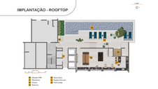 Térreo: Lobby Lounge, Mercado de uso interno, Coworking, Sala de reuniões, Phone Booth, Brinquedoteca, Fitness, Salão de Festas, Delivery, Guarita Blindada