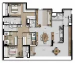 - Layouts modernos e funcionais, com revestimentos, louças e metais de alta qualidade.
